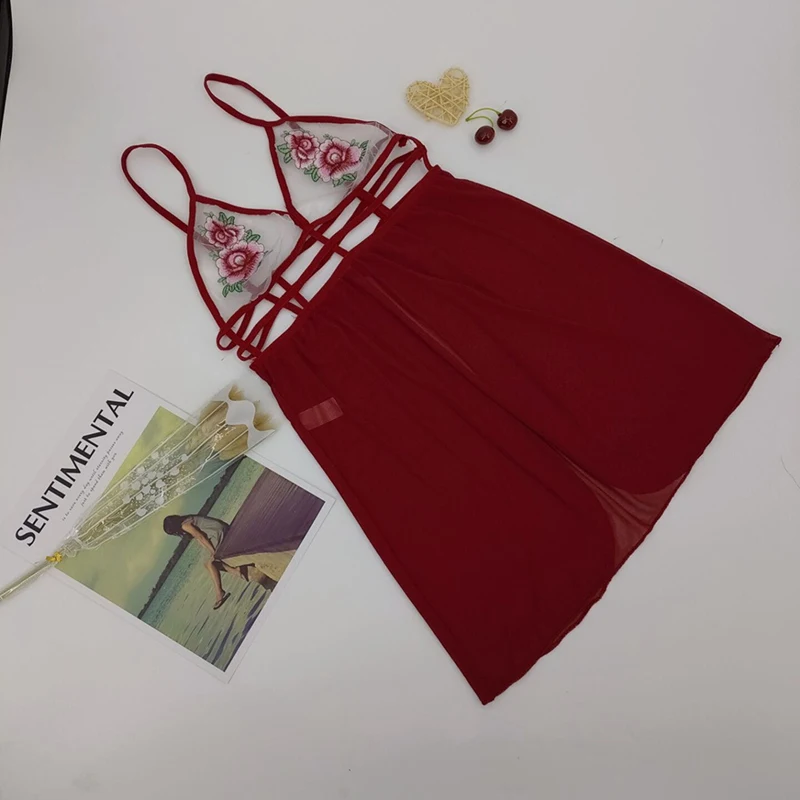 Best Chance of Sexy Lingerie Erotic Sexy Perspective Floral Embroidered Strap Nightdress Sexy Women Babydoll Fashi