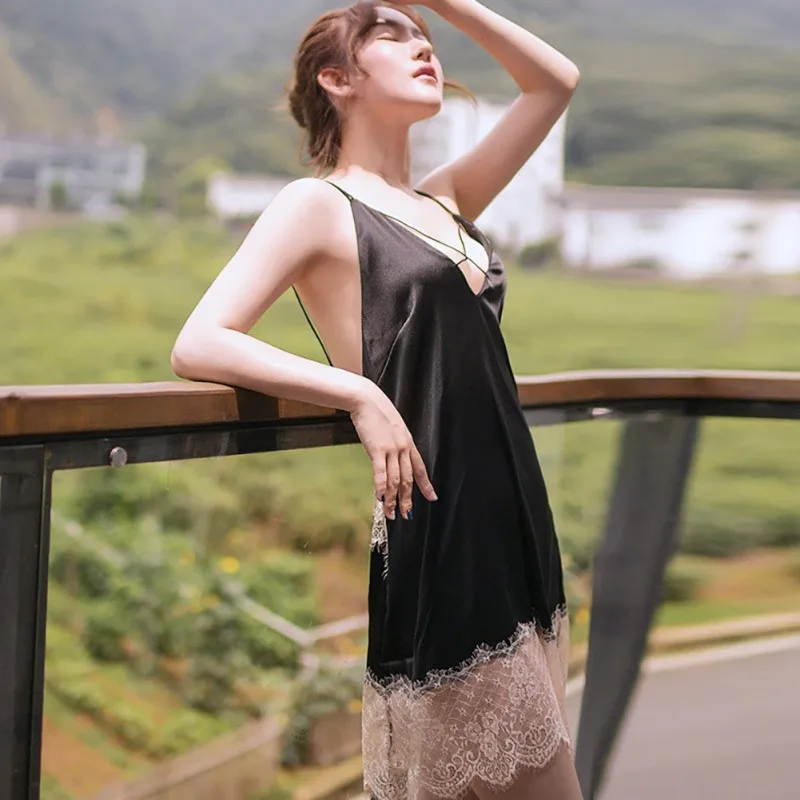 If You search information for Sexy Temptation Silk Sexy Lingerie Female Sling V-neck Adjustable Hollow Lace Backless Dress Nightd, then Sexy Temptation Silk Sexy Lingerie Female Sling V-neck Adjustable Hollow Lace Backless Dress Nightd is possible make you like